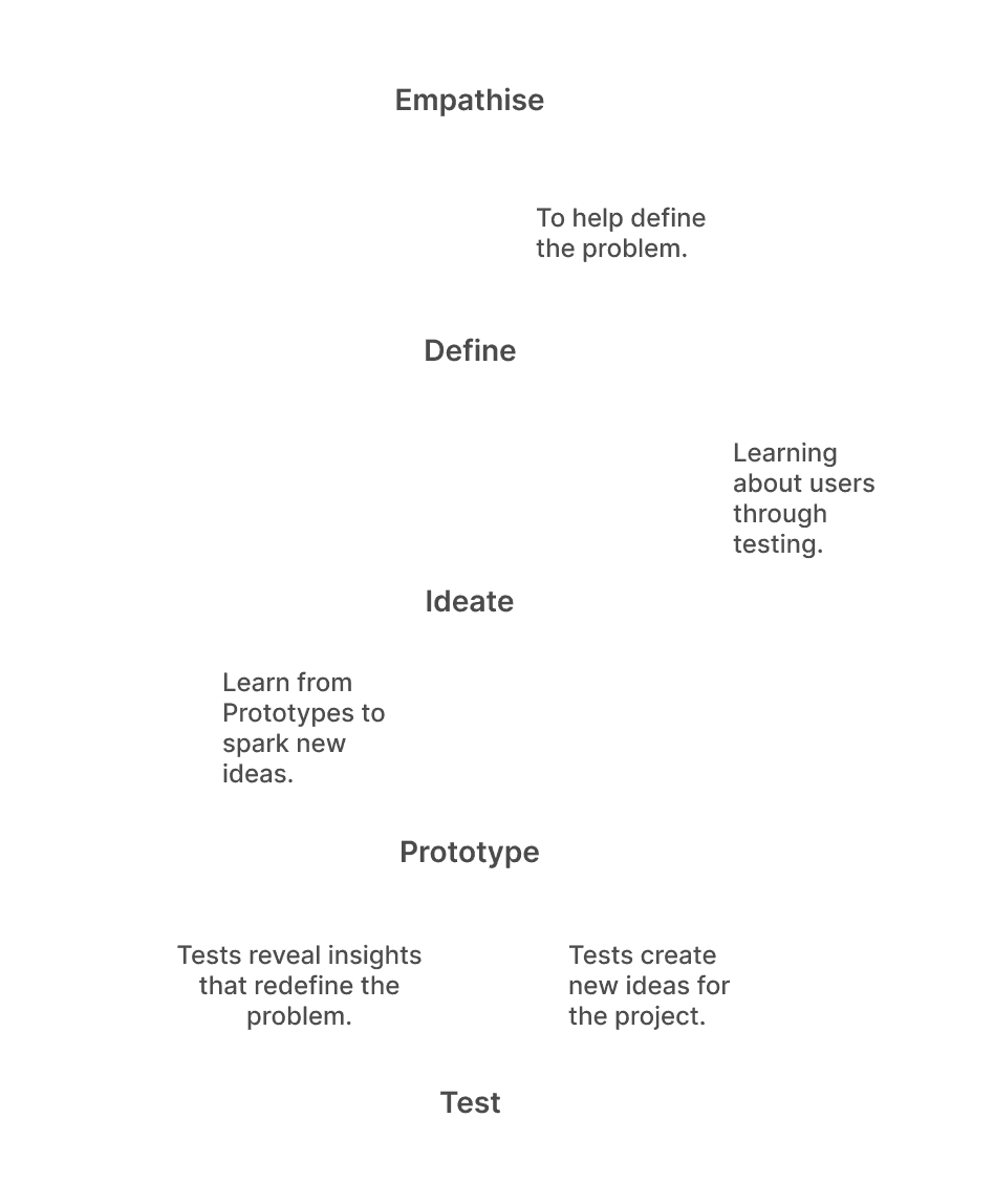 Design Thinking is a non-linear, iterative and solution-based approach, which puts the user at the centre. It involves a continual process of empathising, defining (the Problem), ideating, prototyping, and testing. It is a great guiding framework for tackling complex problems, by reframing them in a human-centric way.